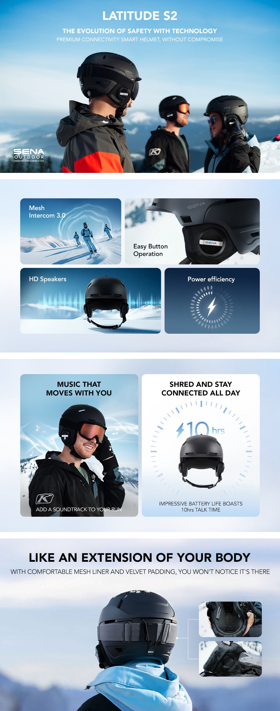 The LATITUDE S2 elevates your slope experience with upgraded communication and proven design. Designed for freestyle skiers, snowboarders, and recreational riders, it revolutionizes snow helmet communication by integrating Mesh Intercom into a lightweight and rugged snow sports helmet. With speakers and a microphone seamlessly built into the earpads, you get clear, hands-free communication while staying fully focused on the ride. Whether you’re carving down the mountain or waiting at the lift, the LATITUDE S2 keeps you safe, comfortable, and effortlessly connected.